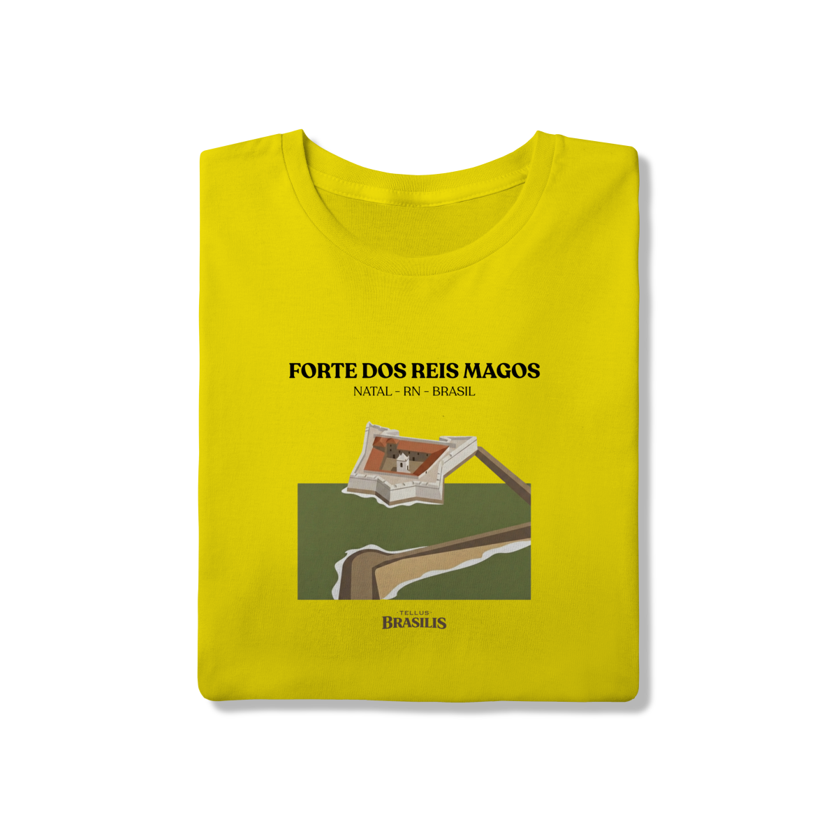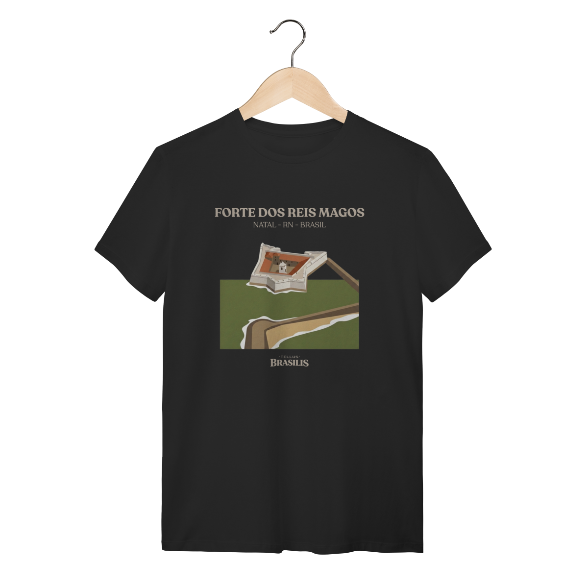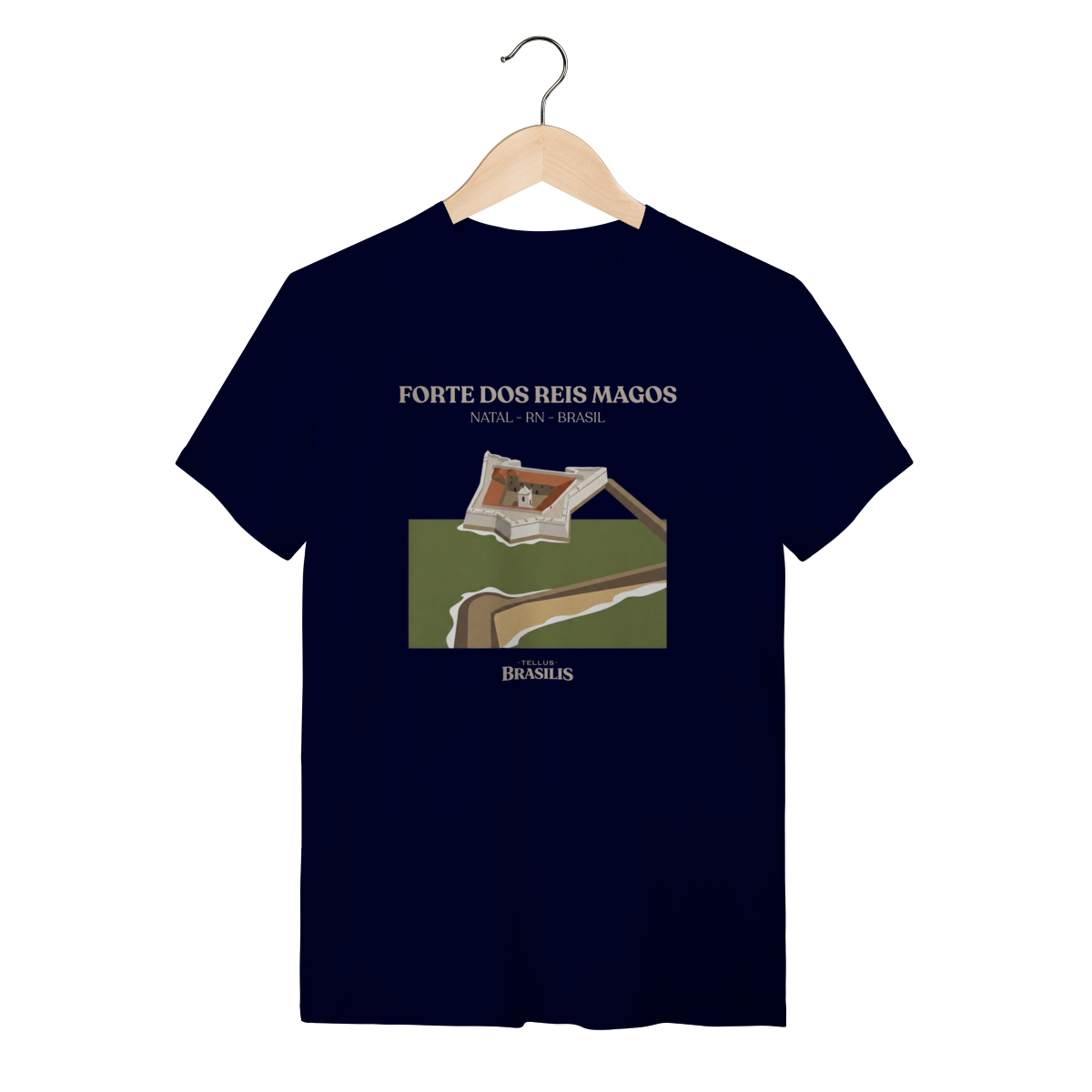 A estampa do Forte dos Reis Magos retrata, de forma minimalista e elegante, um dos maiores símbolos históricos de Natal. A ilustração destaca o formato icônico do forte, inspirado na estrela de cinco pontas, com linhas suaves e cores sóbrias que reforçam a sensação de solidez, história e proteção.