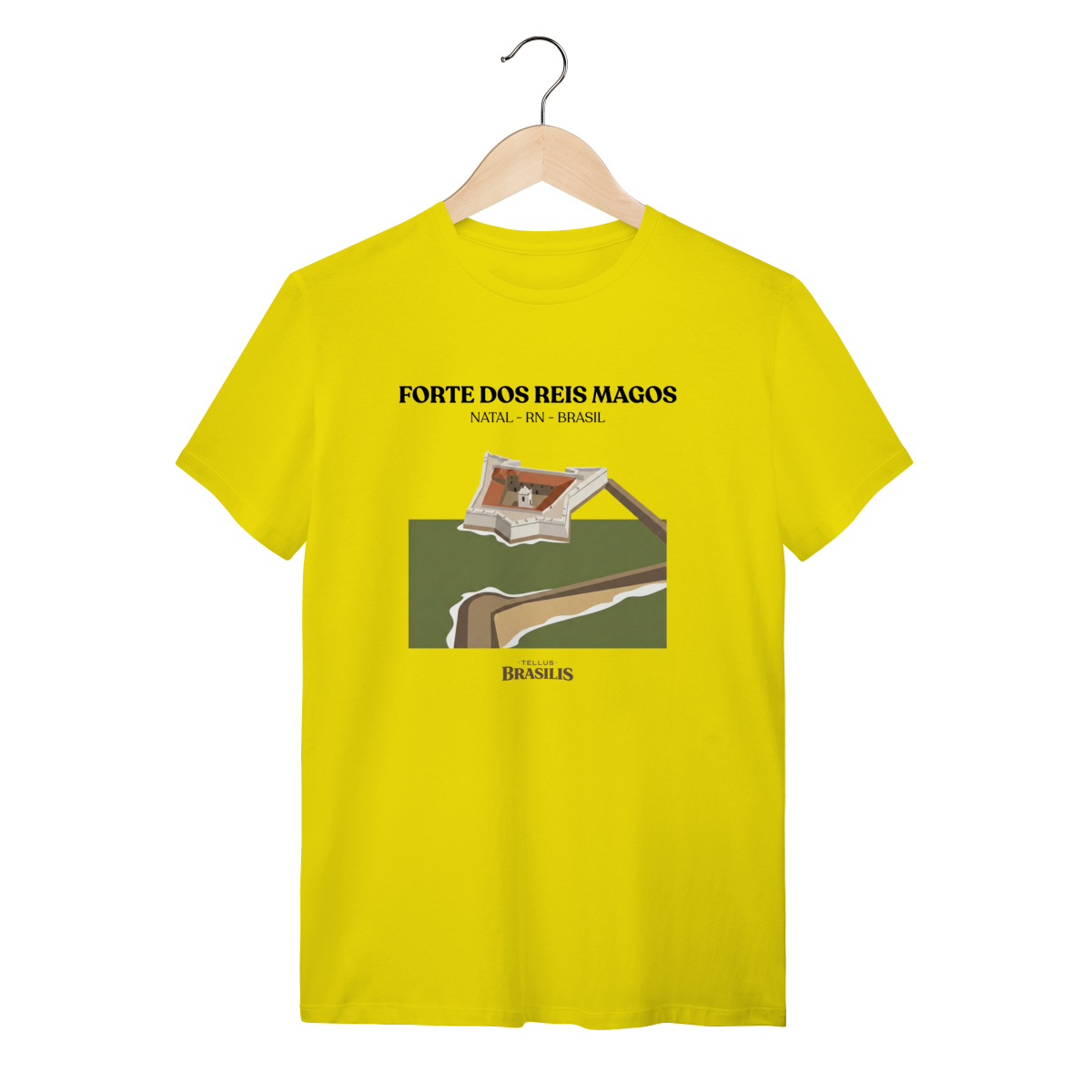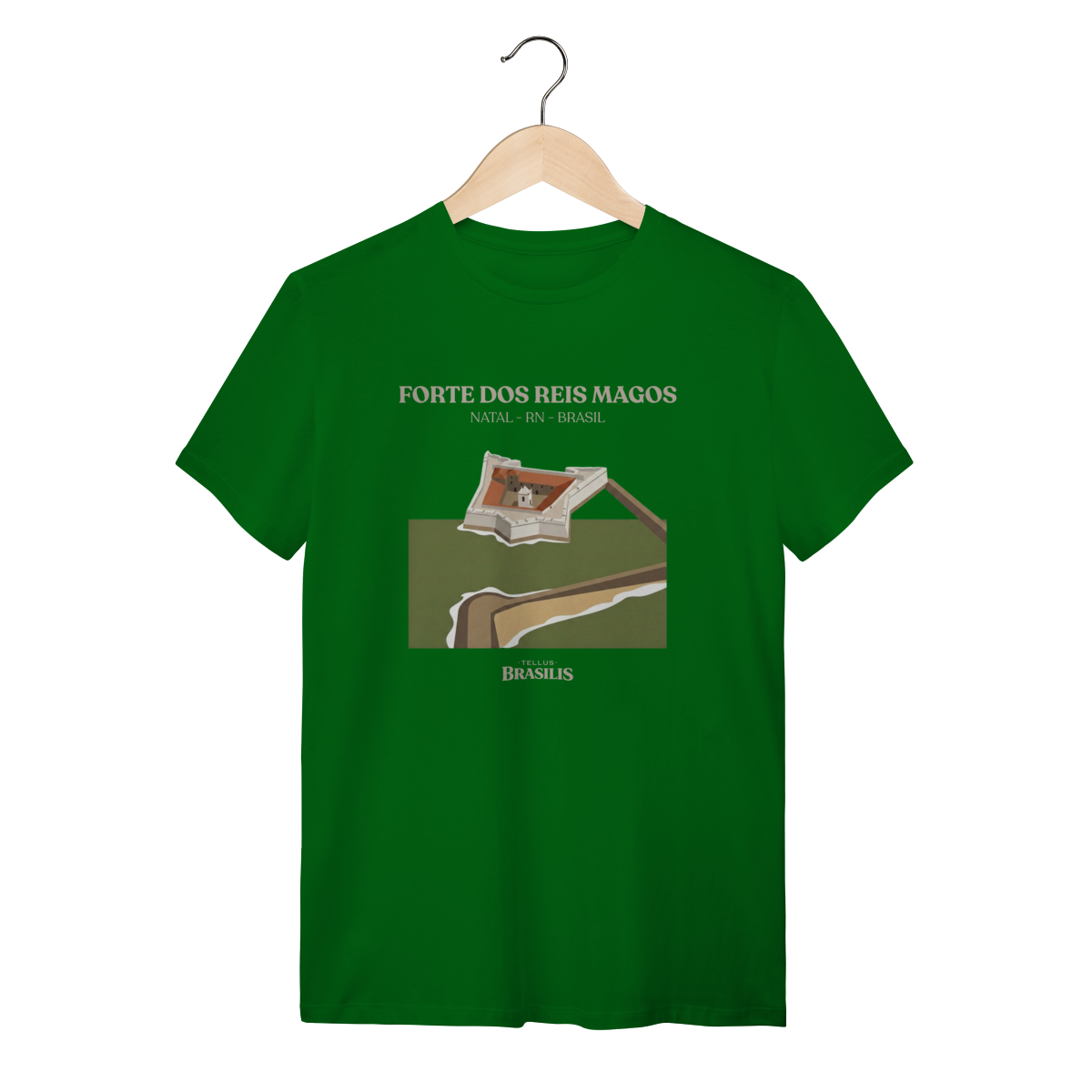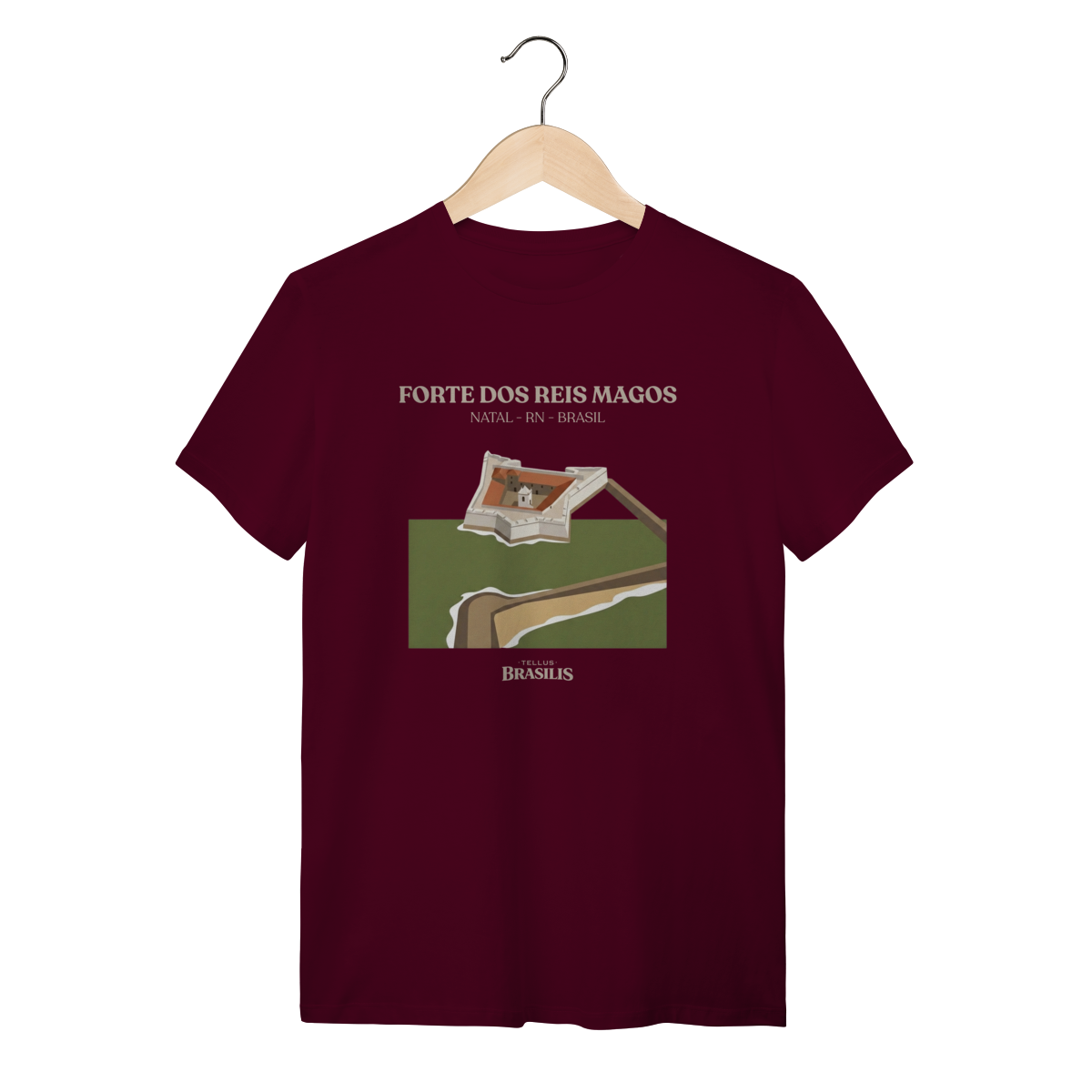 A estampa do Forte dos Reis Magos retrata, de forma minimalista e elegante, um dos maiores símbolos históricos de Natal. A ilustração destaca o formato icônico do forte, inspirado na estrela de cinco pontas, com linhas suaves e cores sóbrias que reforçam a sensação de solidez, história e proteção.