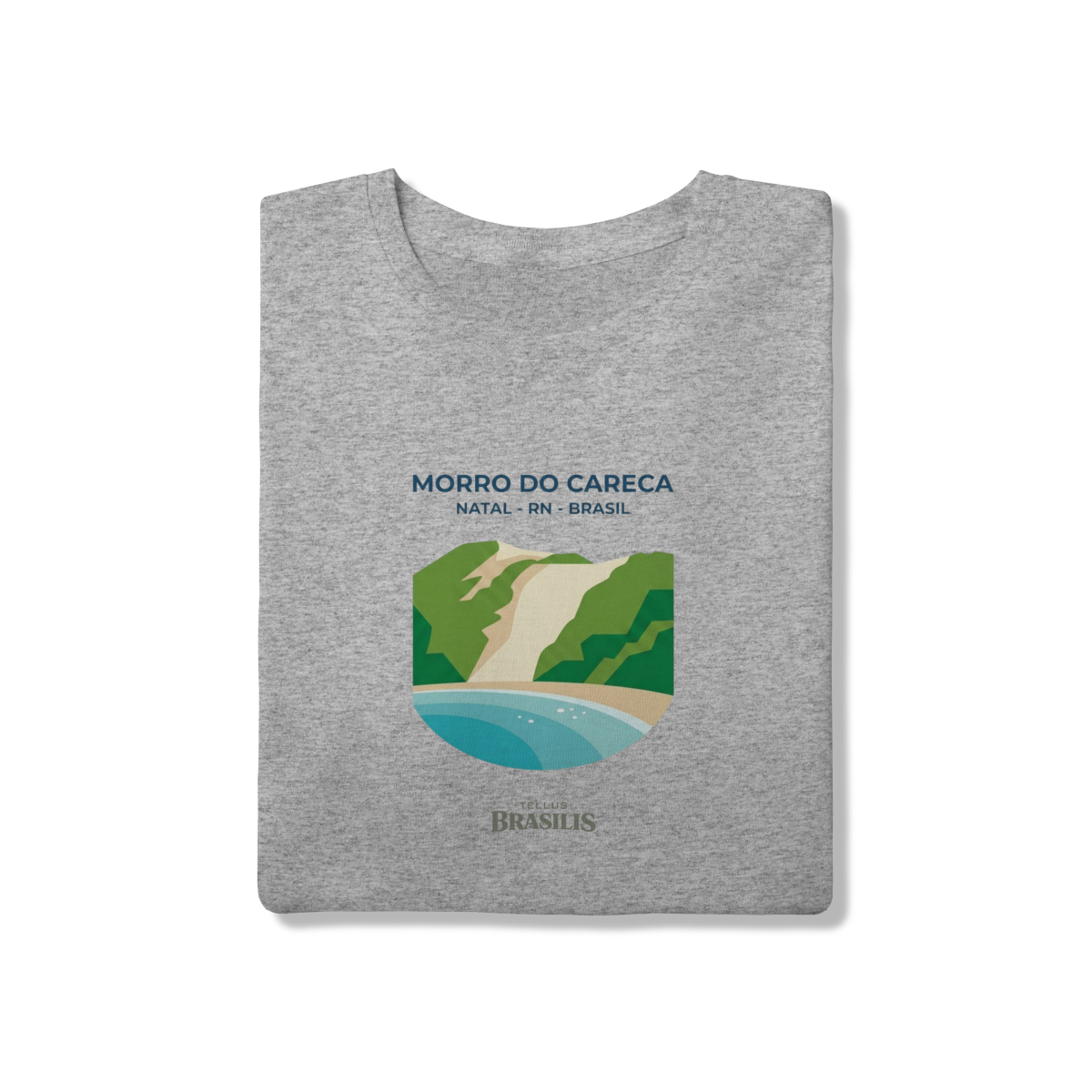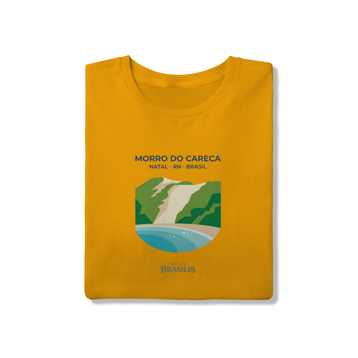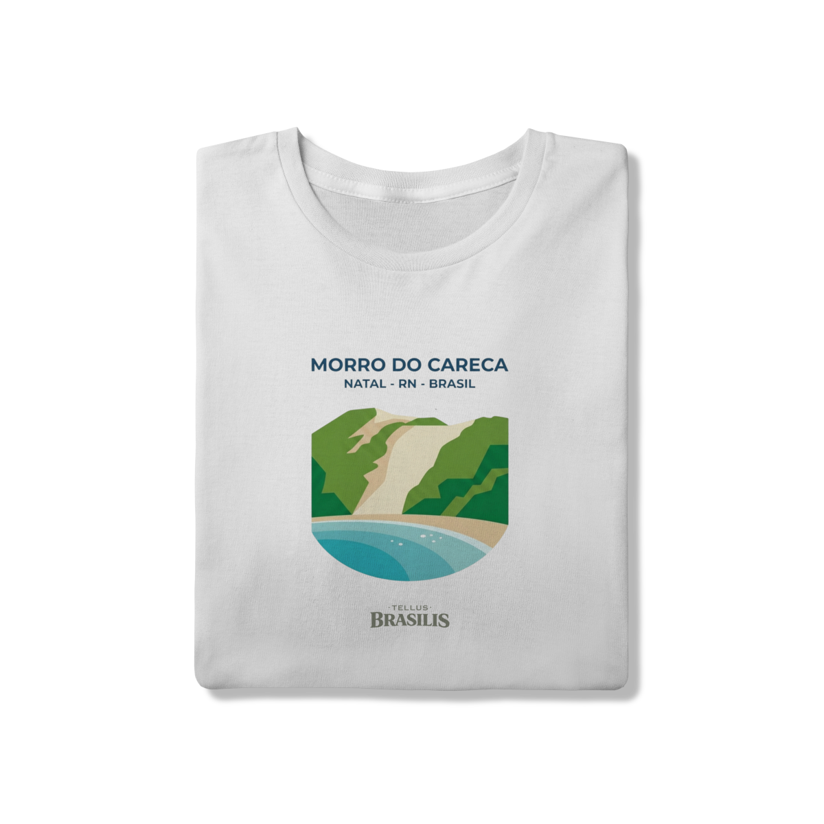 Discreta e elegante, a camiseta celebra a beleza do Morro do Careca de forma atemporal e é ideal também como souvenir/lembrança para quem visitou Natal e deseja guardar uma recordação simbólica e cheia de significado do Rio Grande do Norte.