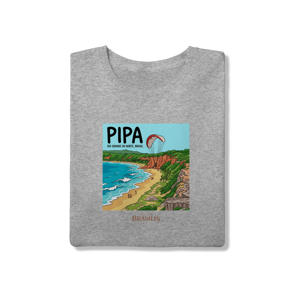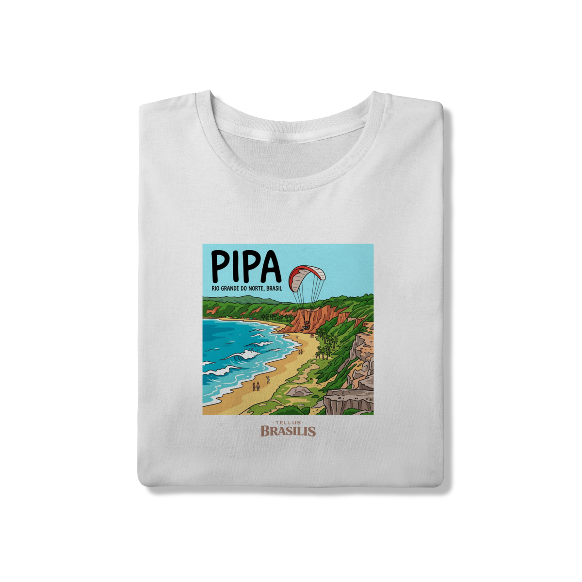 Com traços ilustrados e cores alegres, a arte transmite movimento, verão e conexão com o litoral potiguar, tornando a camiseta uma expressão de quem ama praias cheias de vida, beleza natural e boas vibrações. É ideal também como souvenir/lembrança para quem visitou Pipa e quer guardar uma recordação autêntica de um dos destinos mais icônicos do Nordeste brasileiro.