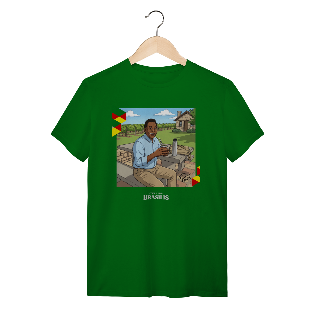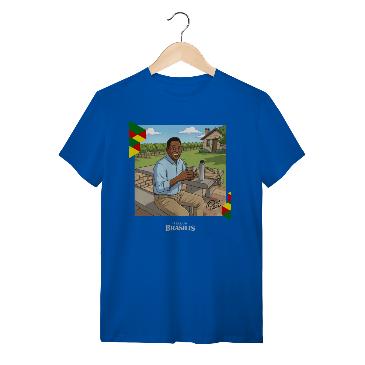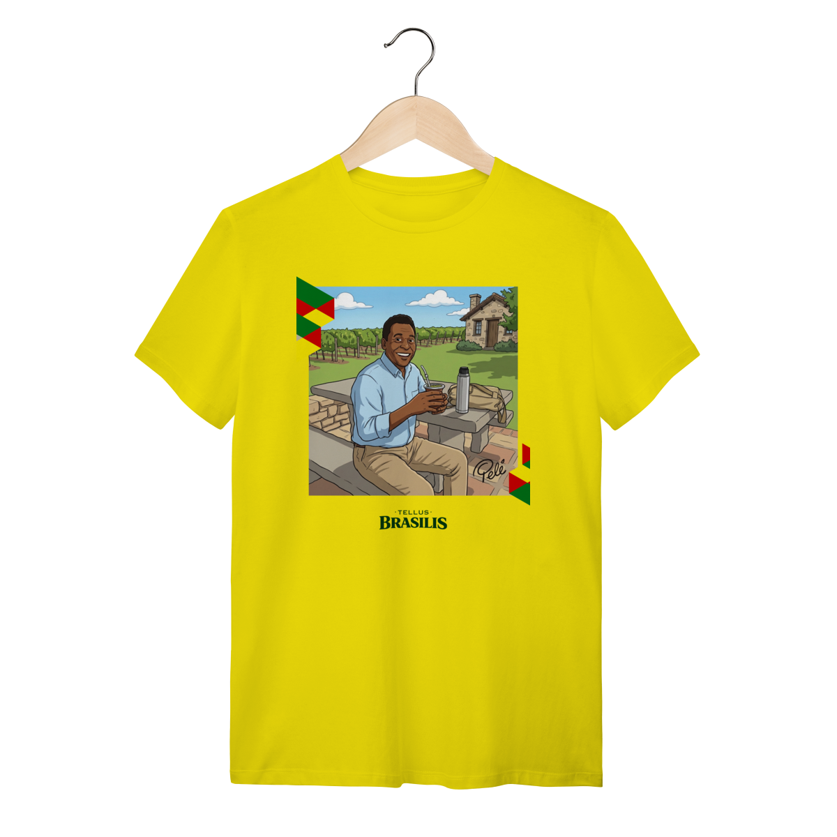A proposta da estampa é unir cultura brasileira, esporte e humor criativo, mostrando que até os maiores nomes globais cabem numa roda de mate. Uma camisa pensada para quem gosta de peças originais, cheias de identidade e capazes de arrancar sorrisos e conversas por onde passam.