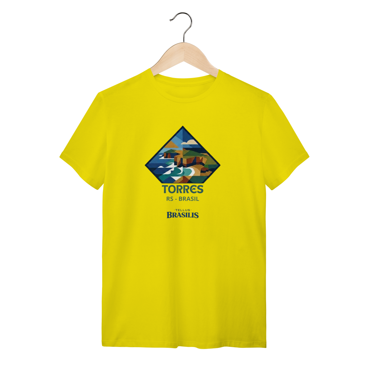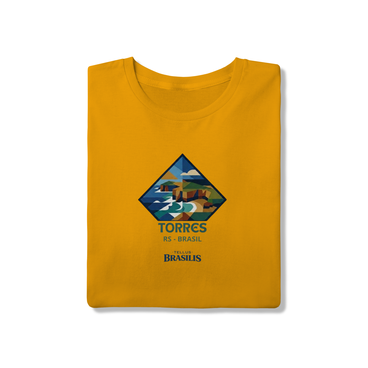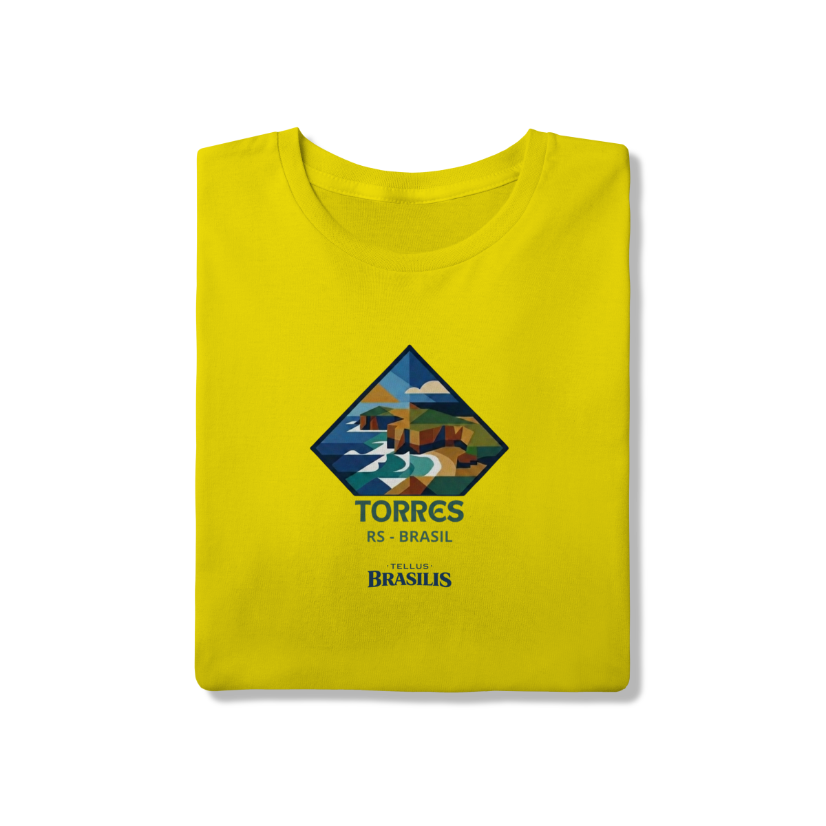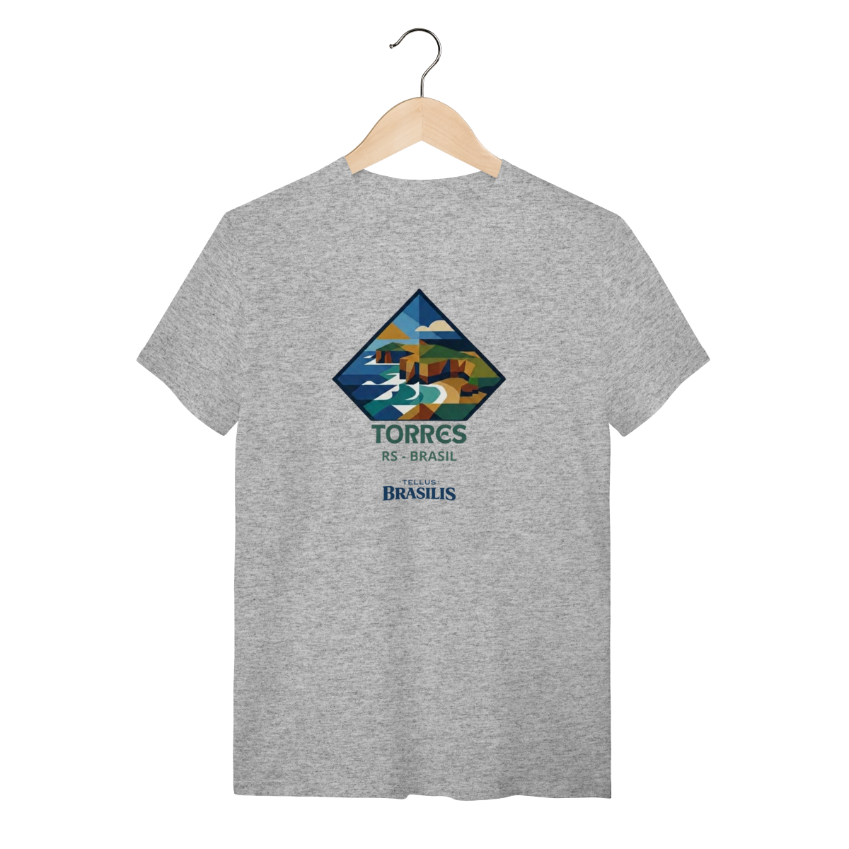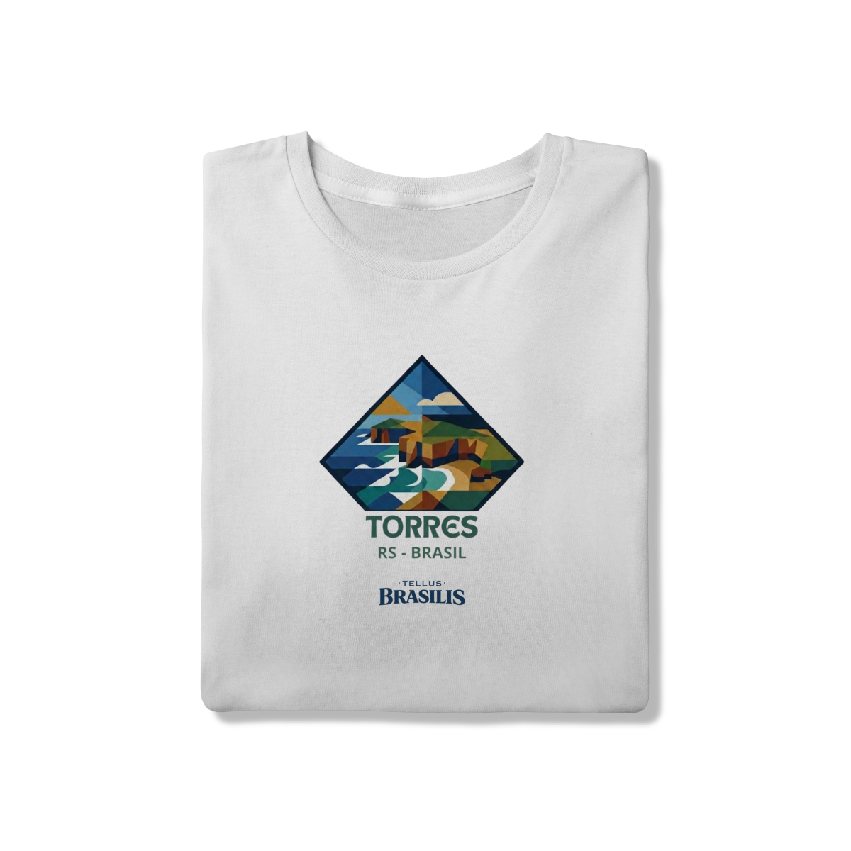 Inspirada na beleza única do litoral norte gaúcho, esta camisa traz Torres representada em uma arte geométrica e estilizada, onde formas e cores se encontram para traduzir a força da natureza e a identidade da cidade. Os icônicos morros, falésias, o mar em movimento e o céu aberto surgem reinterpretados em um visual moderno, artístico e cheio de personalidade.